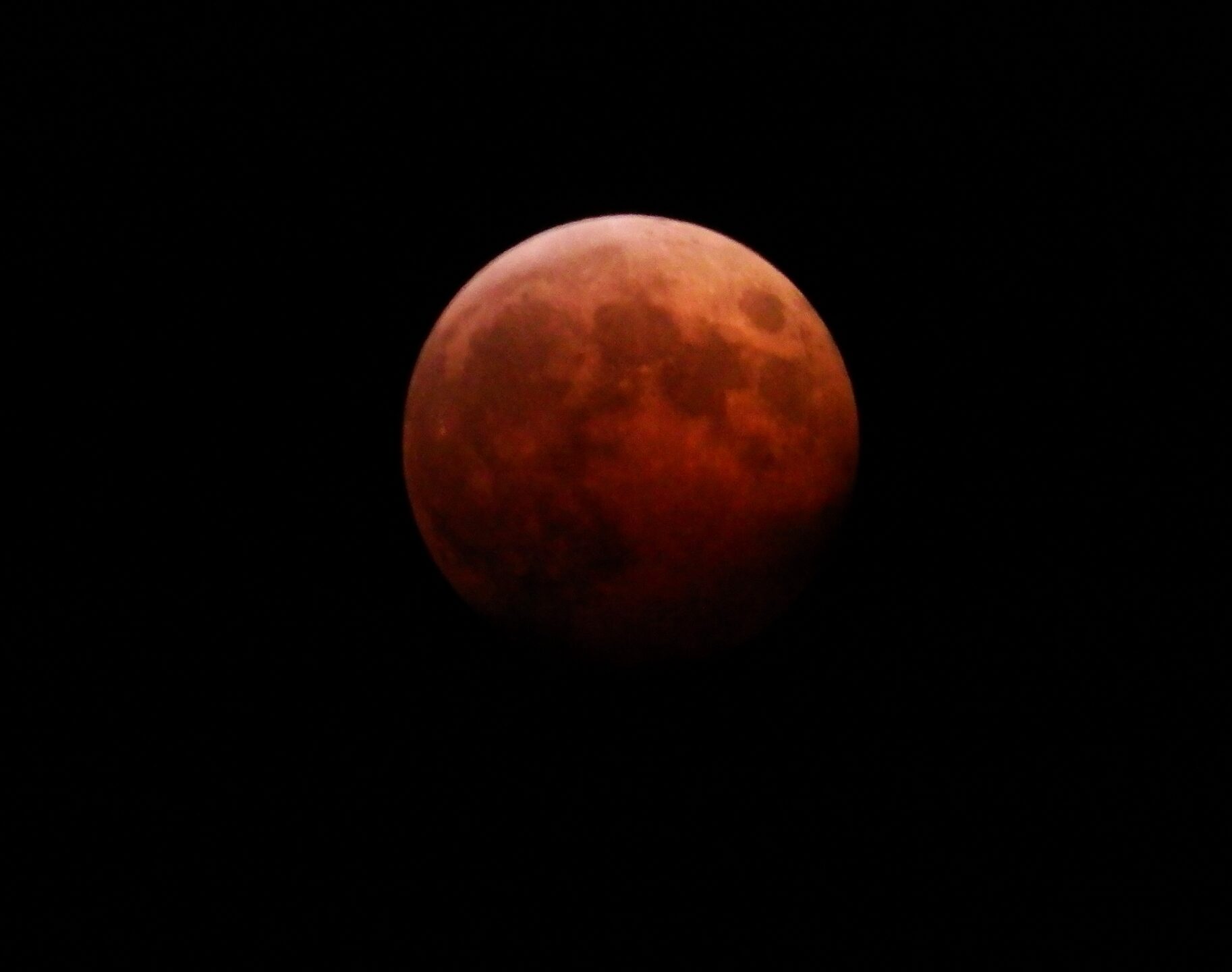 満月が欠け始めるのは夕方頃からで、皆既月食の時間帯は夜の8時前後からおよそ1時間ほど続きました。